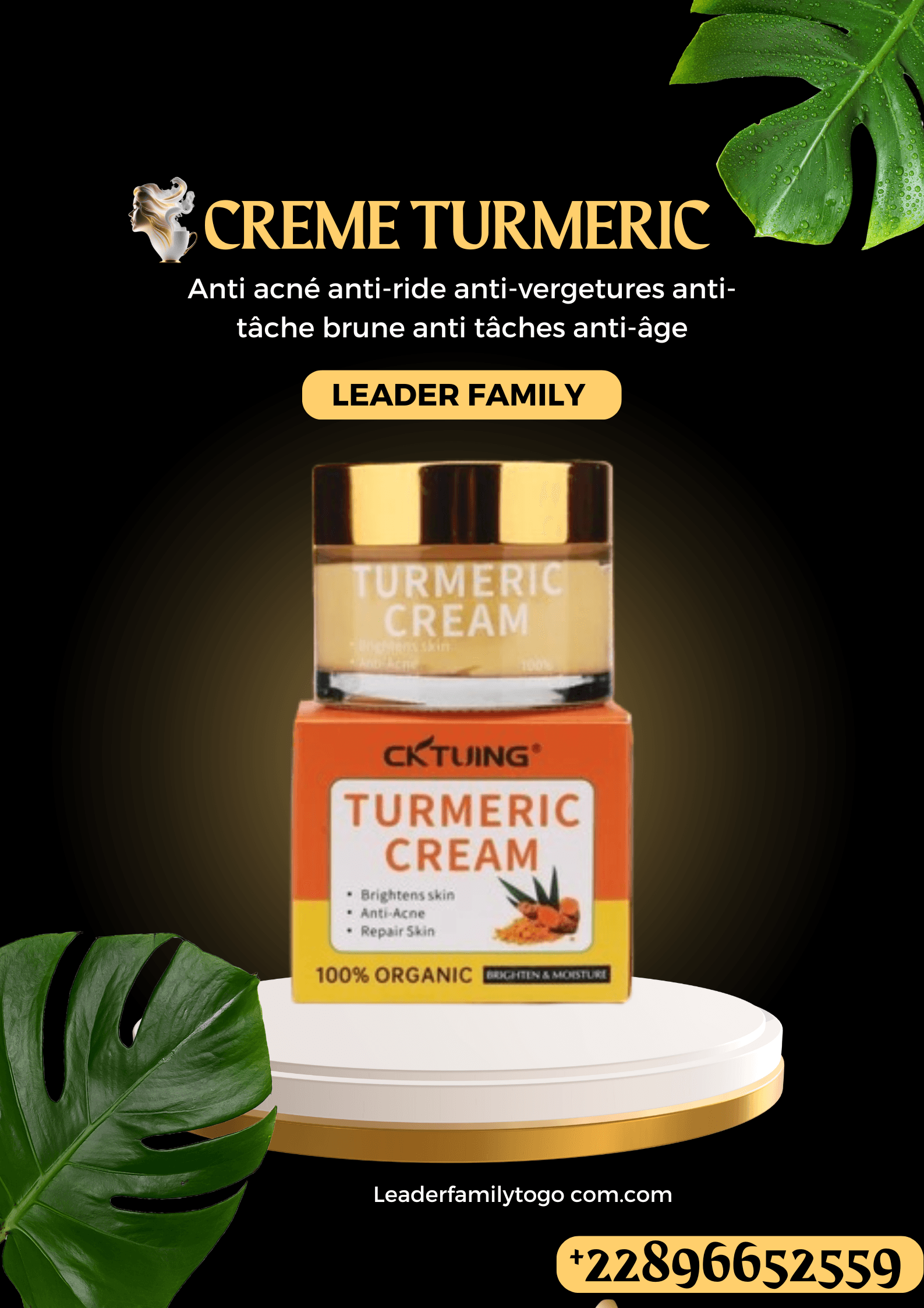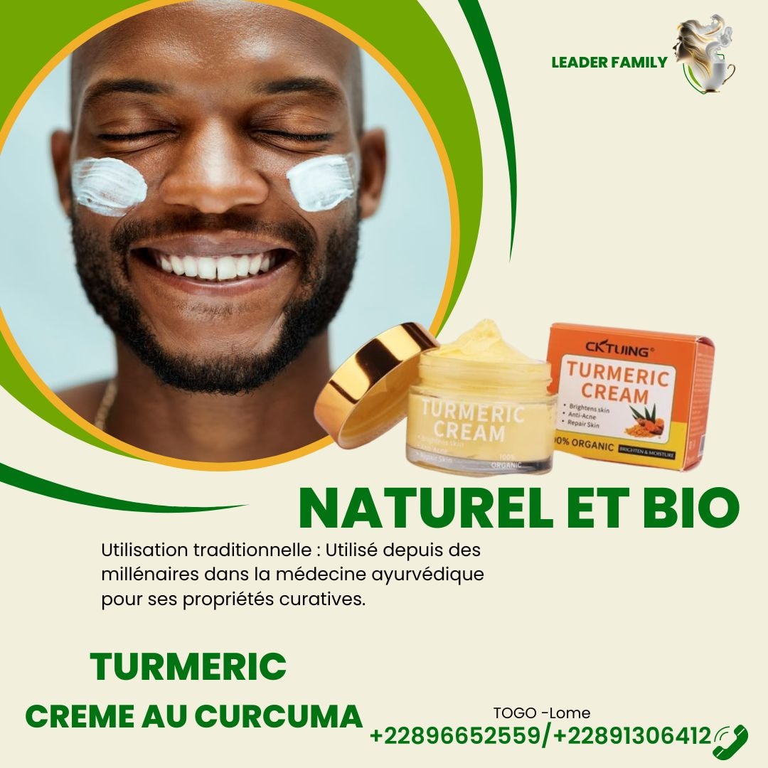 Crème pour le visage au curcuma + 30% de vitamine CHydratant stimulant l’éclat et réparateur de la peau, hydratant avec des ingrédients biologiques Crème anti-âge pour le visage, peaux normales, sèches, grasses et mixtes - 1.7 FL OZ